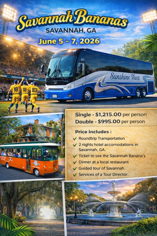 View Area 6 Catalog for 2026 (Area 6 tours are those that pick up / drop off from Staunton, VA to Richmond, VA along I-64.)