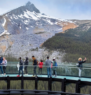 Set out along the unforgettable Icefields Parkway and behold lofty waterfalls, rushing rivers, glacial peaks, imposing cliffs, and snowcapped mountain ranges. Stop at the Athabasca Glacier where it’s your choice! Choose a fun ride** across this mass of glacial ice nearly 1,000 feet thick, the largest accumulation of ice south of the Arctic Circle -OR- take a walk onto a glass-bottom platform at the Columbia Icefield Skywalk to experience the breathtaking views of the Sunwapta Valley and witness the dramatic landscape. This afternoon, stop at stunning Peyto Lake, a glacier-fed lake that evokes pure serenity. Be on the lookout for bears and stately elk on your return to Banff.